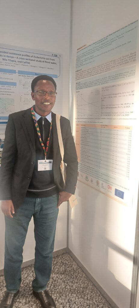 Pictures 5 and 6 (above): Fredy Mlowe, PhD candidate from SUA University, presenting his poster during ECTMIH poster session.